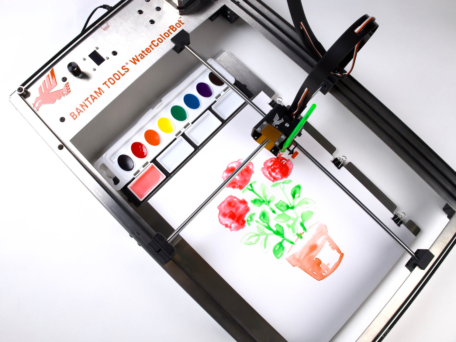The Bantam Tools WaterColorBot™, designed for artists of all ages, brings together real watercolors, precision motion, and the joy of painting to expand what’s possible in the world of Machine Arts. The Bantam Tools WaterColorBot™ turns digital artwork into expressive watercolor paintings made with a real brush.