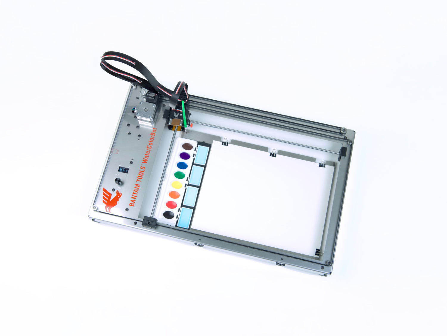 The Bantam Tools WaterColorBot™ introduces Bantam Tools’ painting workflow at a 9 x 12” scale, ideal for home studios, classrooms, and creative makerspaces. It features a standalone design with an integrated OLED display and microSD card support, allowing artists to paint directly from stored files without needing a connected computer.