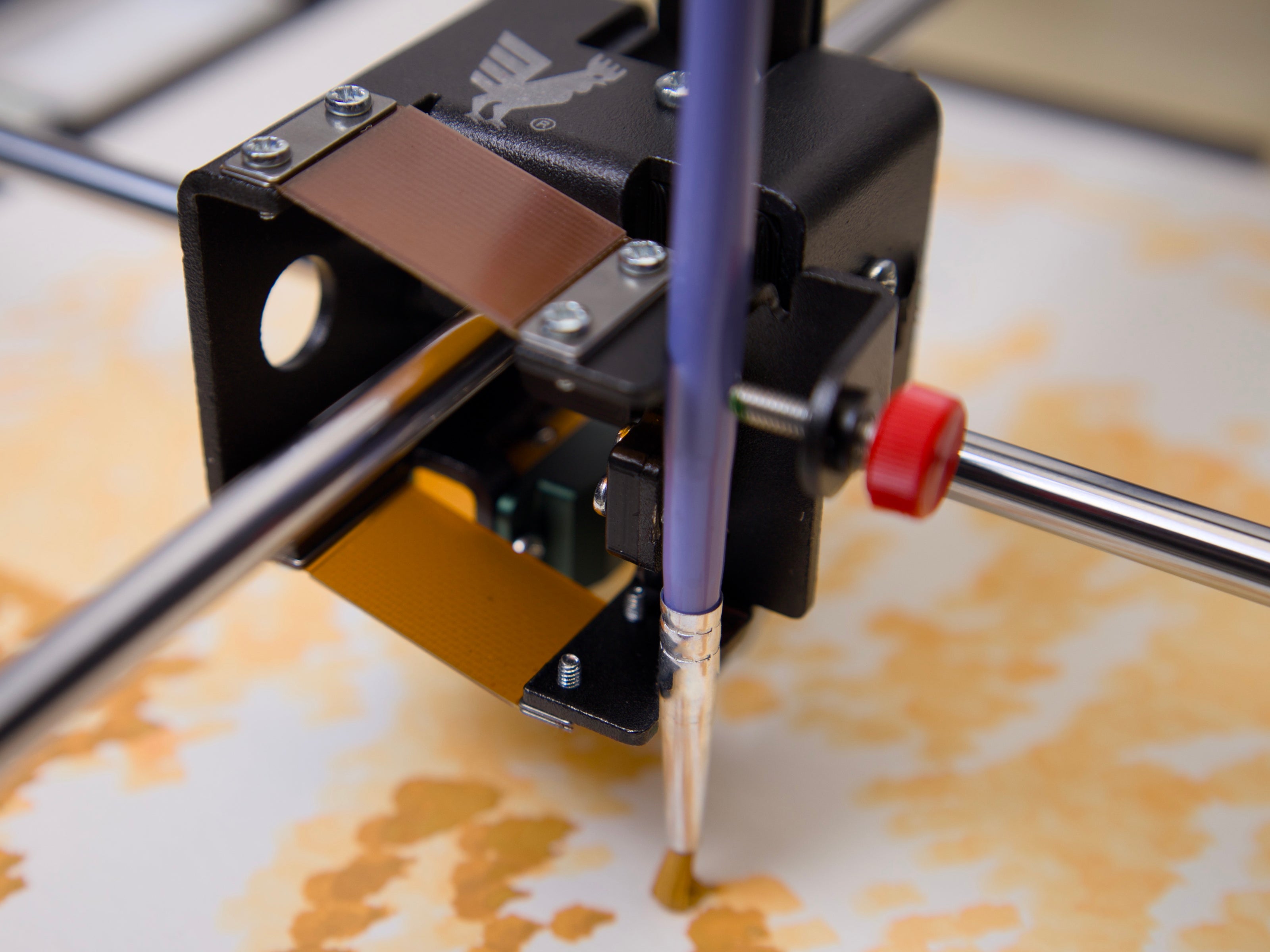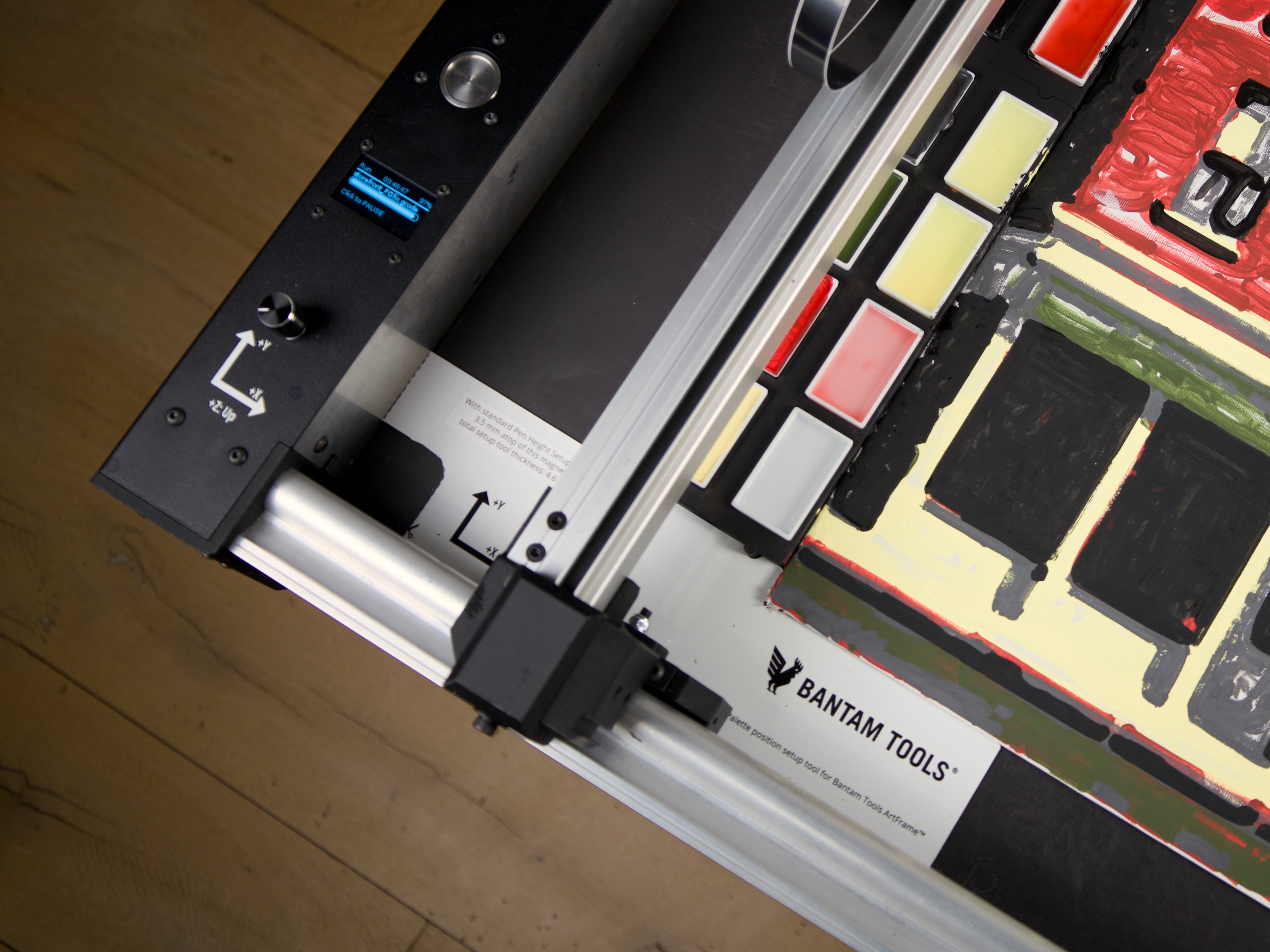 Bantam Tools Painting Machines enable artists to create real paintings by combining expressive media with precise machines, using traditional tools like brushes, pigment, and canvas.