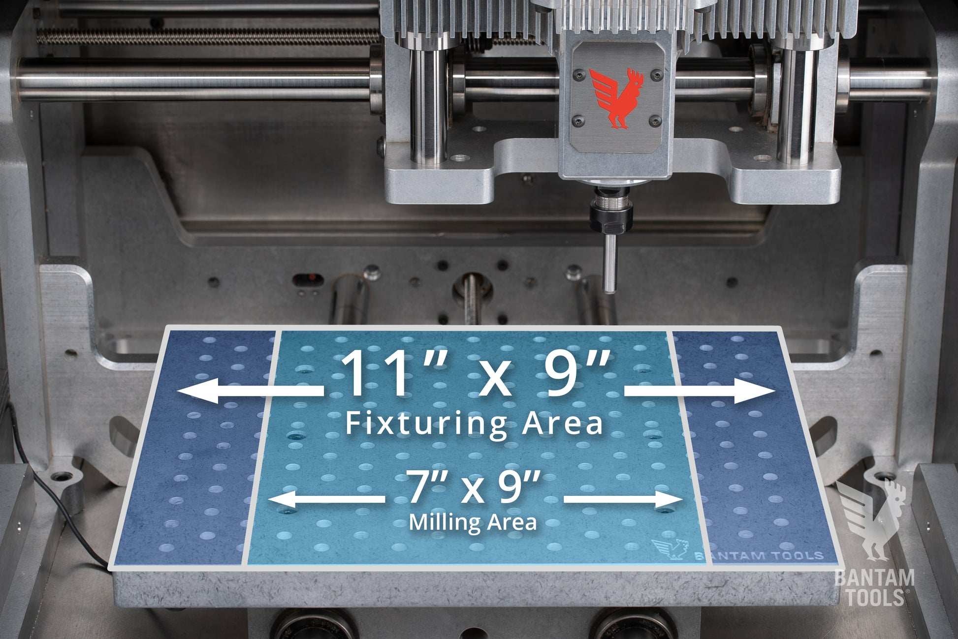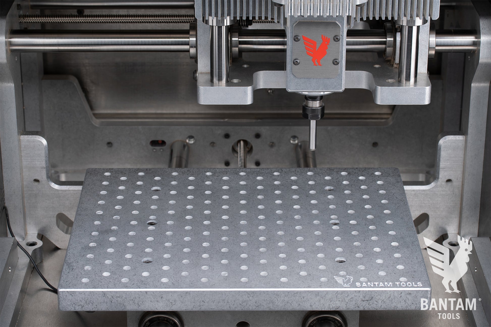 The Bantam Tools Desktop CNC Fixturing Pallet is a 11”x 9" x 0.75” conductive fixturing plate with threaded pin holes that expands the work area of the Bantam Tools Desktop CNC Milling Machine. Easy to install and remove, this fixturing solution offers you more flexible workholding that is compatible with all Bantam Tools Desktop CNC Milling Machine fixturing accessories and Bantam Tools software.