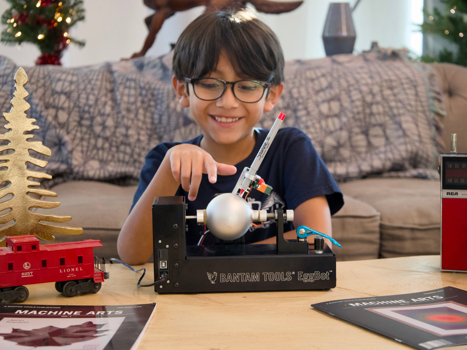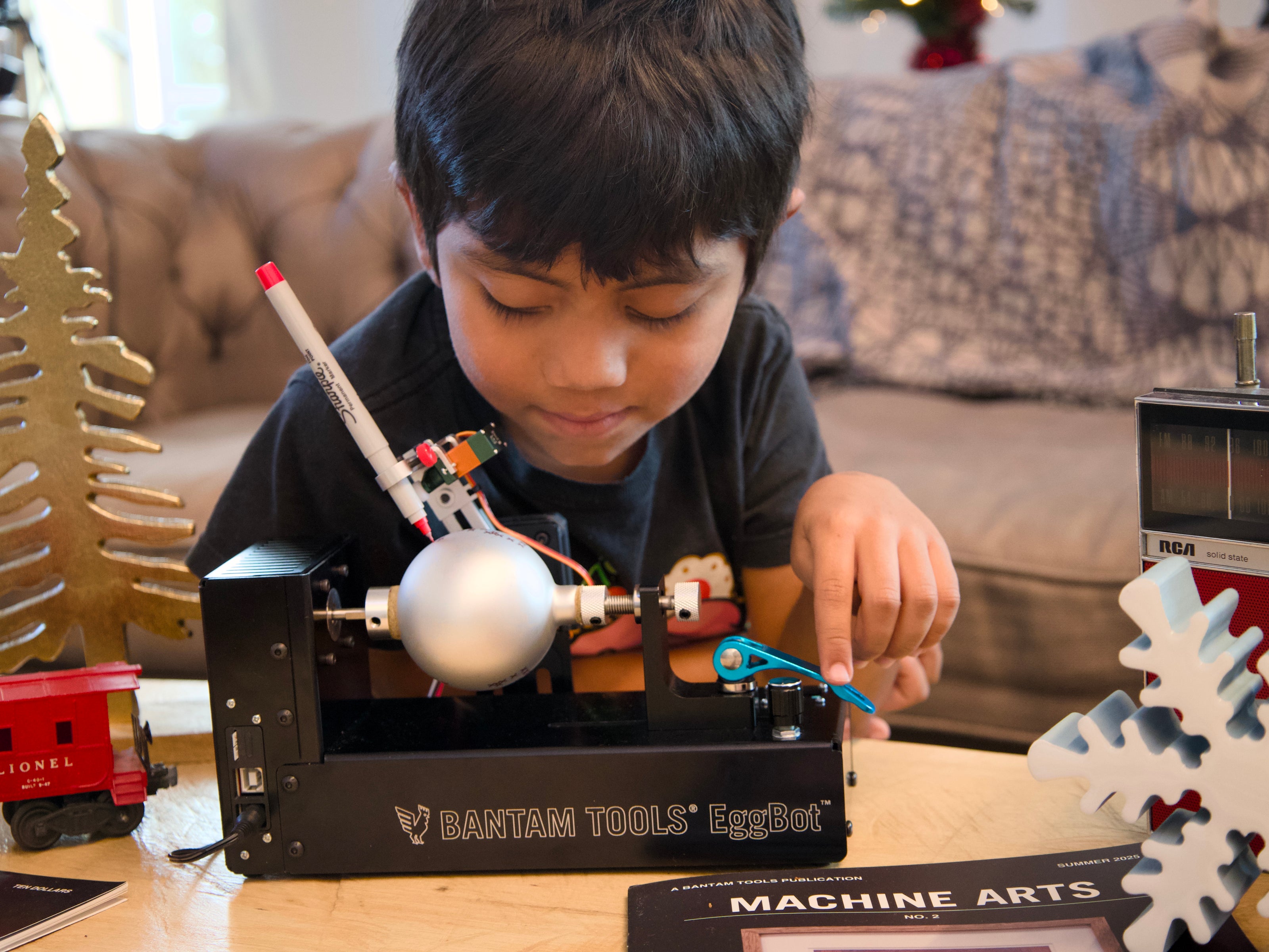 The Bantam Tools EggBot™ Ornament Edition is the ornament drawing machine that brings creativity and connection to the holidays. Instead of buying generic decorations, you can decorate beautiful blank glass ornaments to create custom heirlooms that your family will cherish for generations. Decorate ornaments with names, dates, heartfelt messages, or original artwork to make each ornament part of your holiday family tradition. Give custom ornaments as gifts to family, friends, and coworkers to spread the joy.