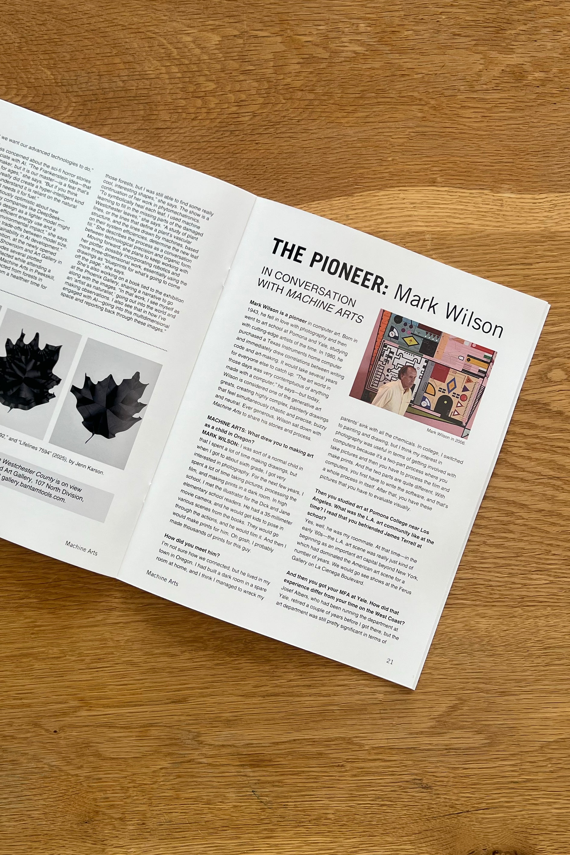 Welcome to the debut issue of Machine Arts Magazine, a new magazine dedicated to shining a light on the human element of machine-assisted art. This quarterly publication explores the rich intersection of creativity, code, and computer-controlled machines, highlighting the artists, ideas, and innovations shaping the future of machine-assisted expression.