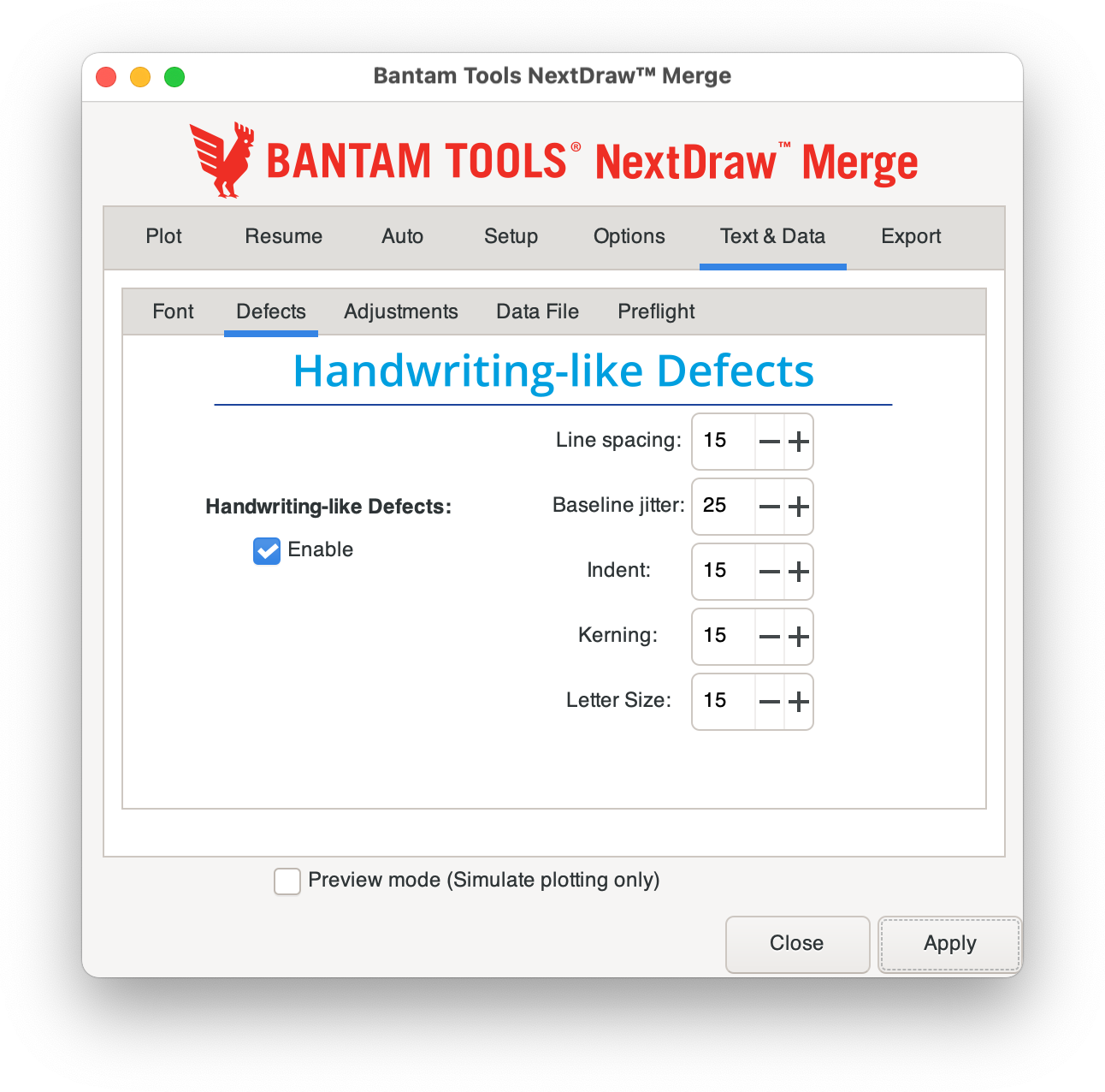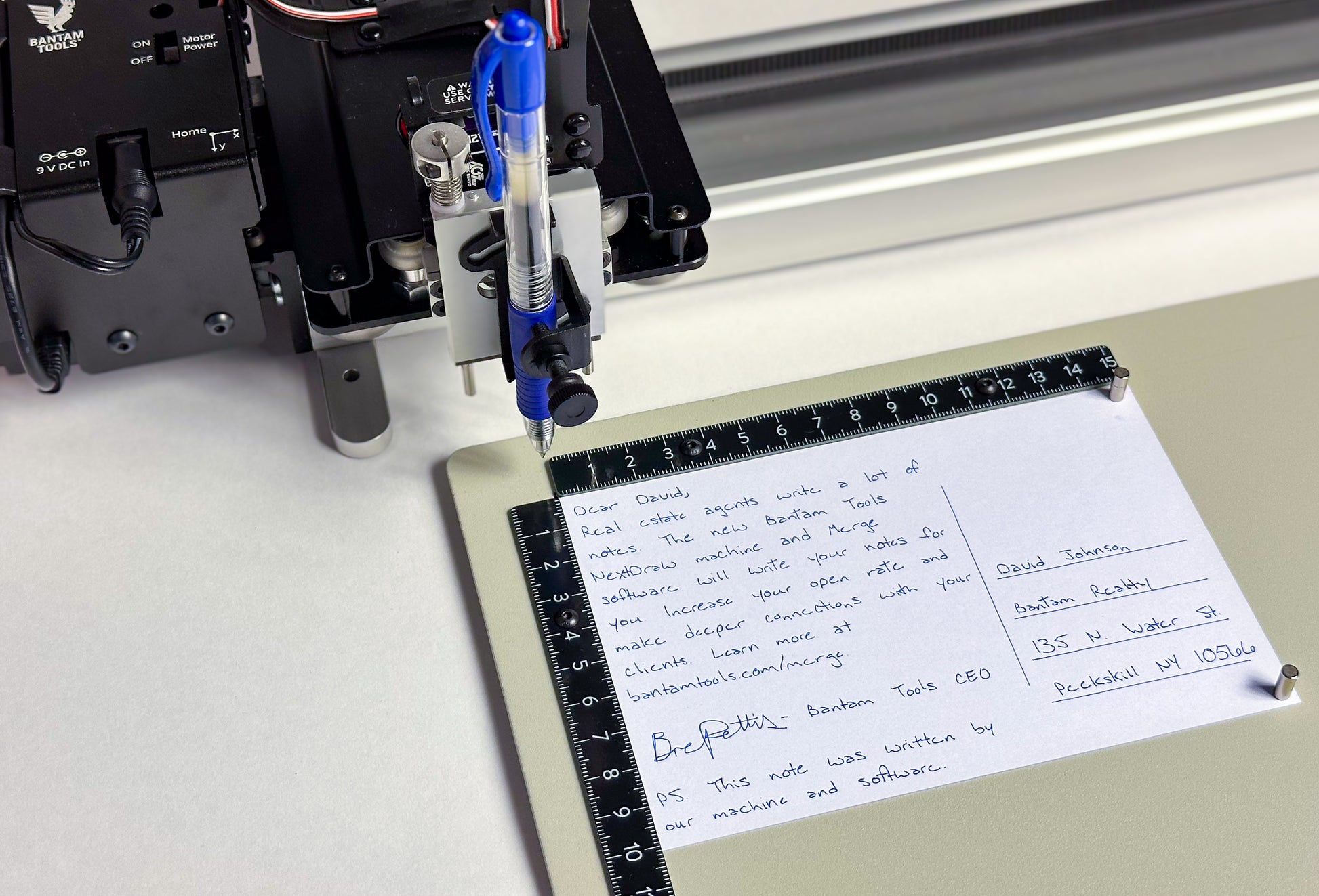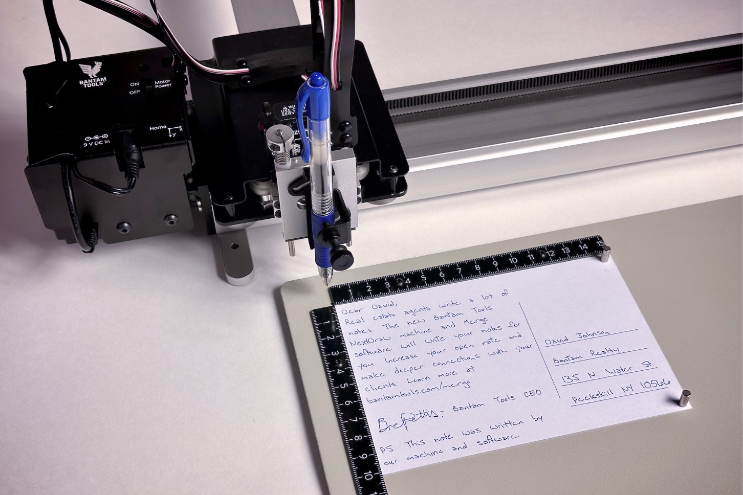 The Bantam Tools NextDraw™ Merge Software inserts names, addresses, and more into your document and plots them with a pen for a realistic handwritten look. Use it to create notes, invitations, correspondence, labels, letters, and envelopes.